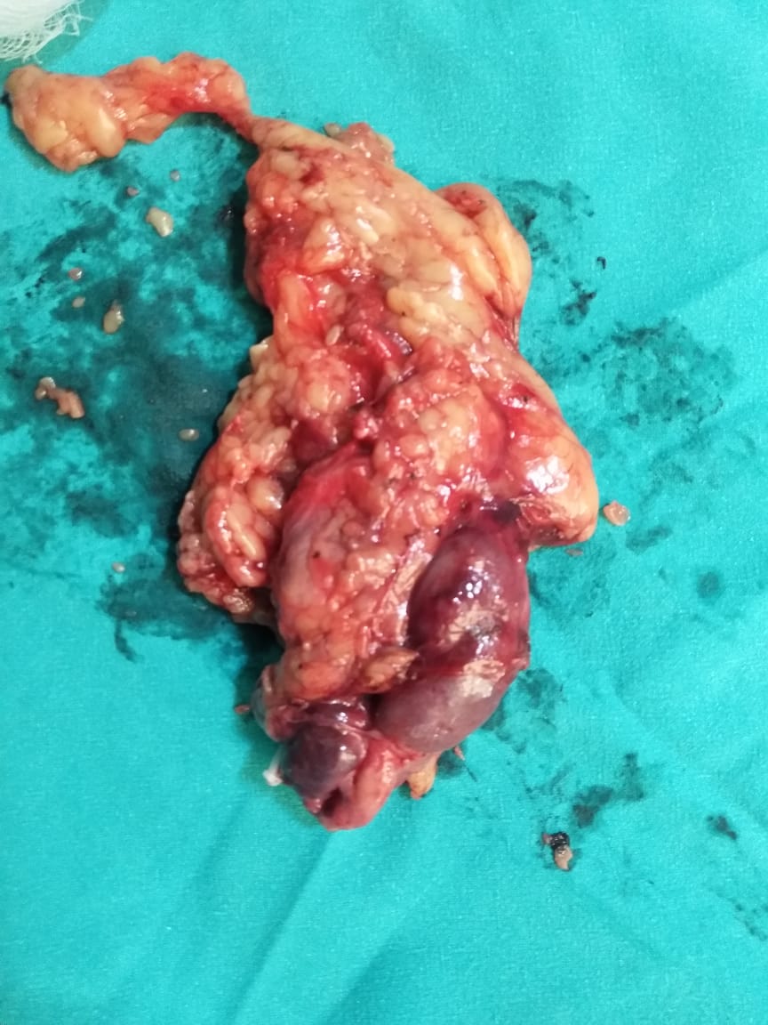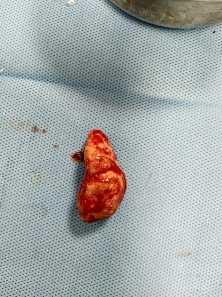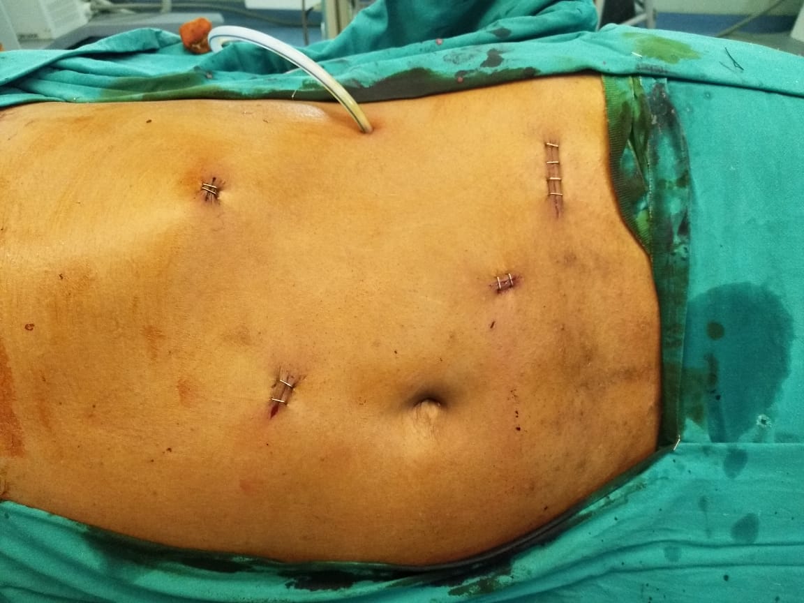 Laparoscopic removal of adrenal tumor. Histopathology was suggestive of pheochromocytoma
